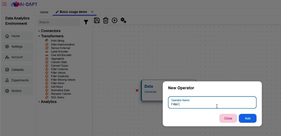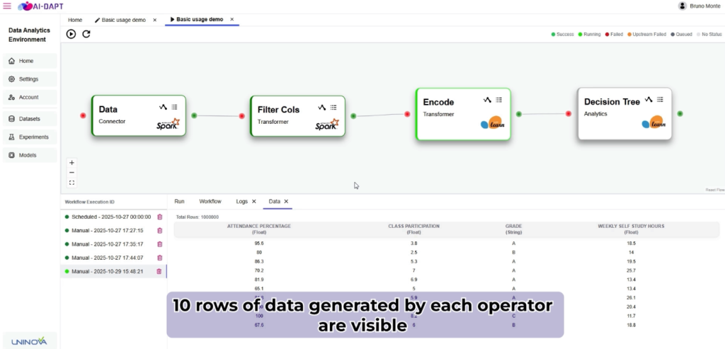At its core, DAVE is the pipeline “control centre” of the AI-DAPT platform. It allows users to: